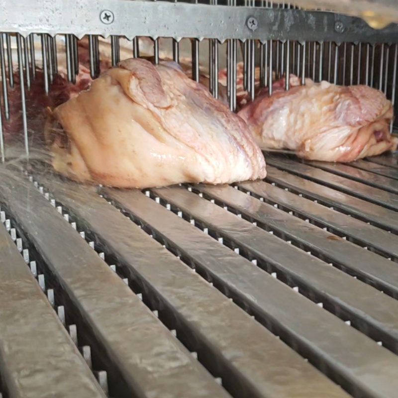 定制需求:主要用于猪肉及鸡腿肉调味品液体注射,同时要辅助具有断筋嫩滑功能,另外加装了一套系统,用于五花肉的和鸡胸肉的扎肉孔功能,这是妥妥的量身定制,一机多用。